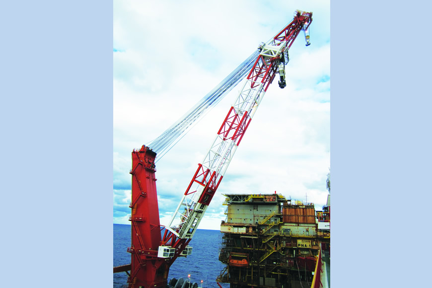 石油钻井平台专用起重机用于超万吨海上石油钻井平台、船舶等海工装备设施的吊装建造。与传统建造工艺相比,整体单次吊装可为用户节省200多万个工时,建造周期缩短30%以上。大连重工2006年为莱福士海洋工程有限公司设计制造的20000t石油钻井平台专用桥式起重机已成功应用于超万吨海上石油钻井平台的整体吊装合拢。