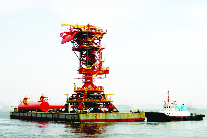 单点系泊是海洋石油开发工程中的重要设施之一。大连重工为中海油研制的单点系泊产品用于系泊海上石油加工处理装置和油气传输,设备总重为2144吨,企业承担了单点系泊系统中建造工艺的制定、整体钢结构的制造、全部铸件的铸造、全部铸锻件的机加工以及除管系和电气设备外所有部件的装配。